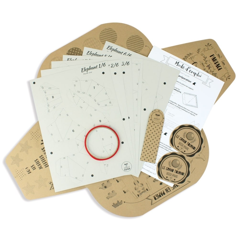 Kit de décoration à poser en papier 100% recyclé fabriqué en France. Le kit comprend des planches de pièces pré-découpées, une notice et du scotch double face, tout y est pour construire ce superbe éléphanteau.