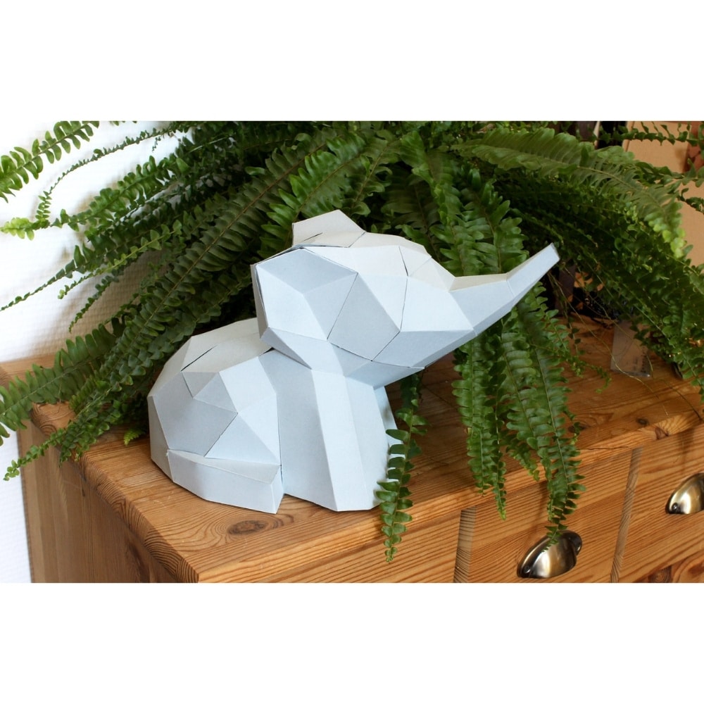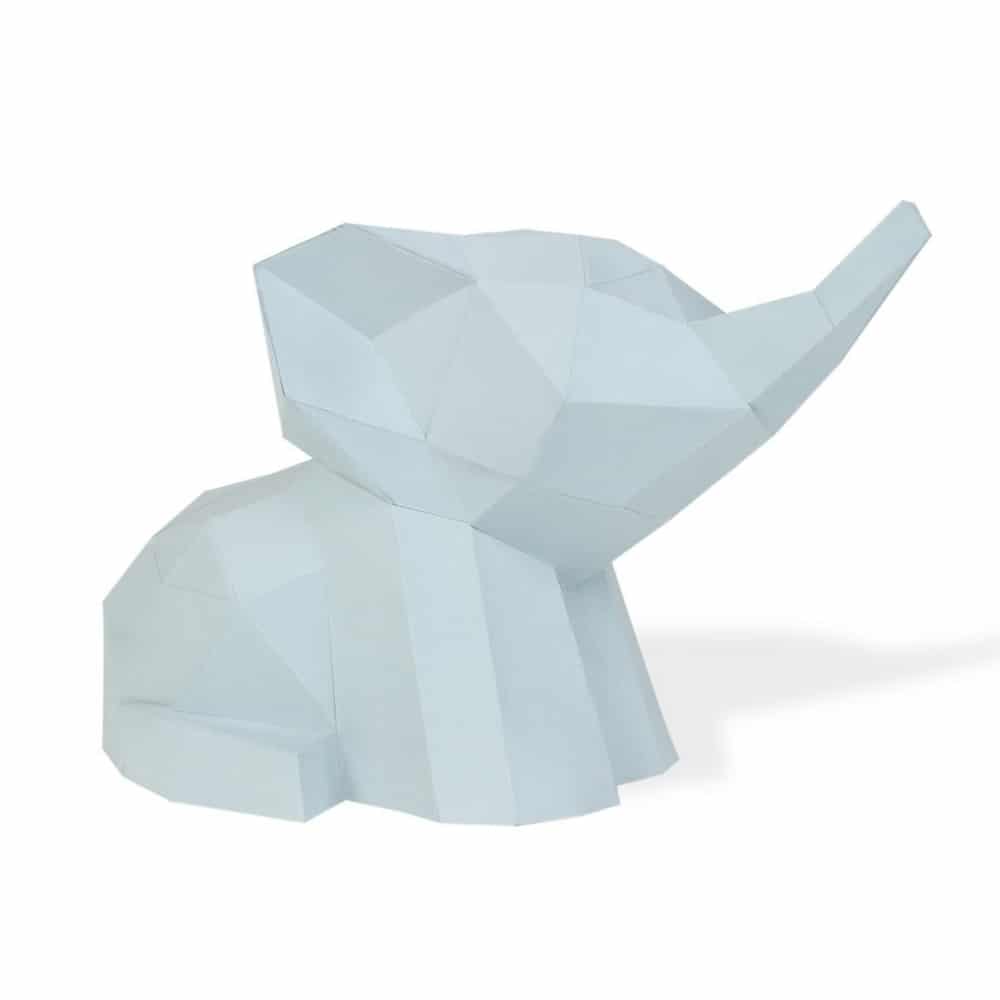Trophée en papier 3D Babies éléphanteau, décoration originale à poser 100% fabrication française et éco-responsable de la marque Agent-Paper, à monter soi-même niveau facile.