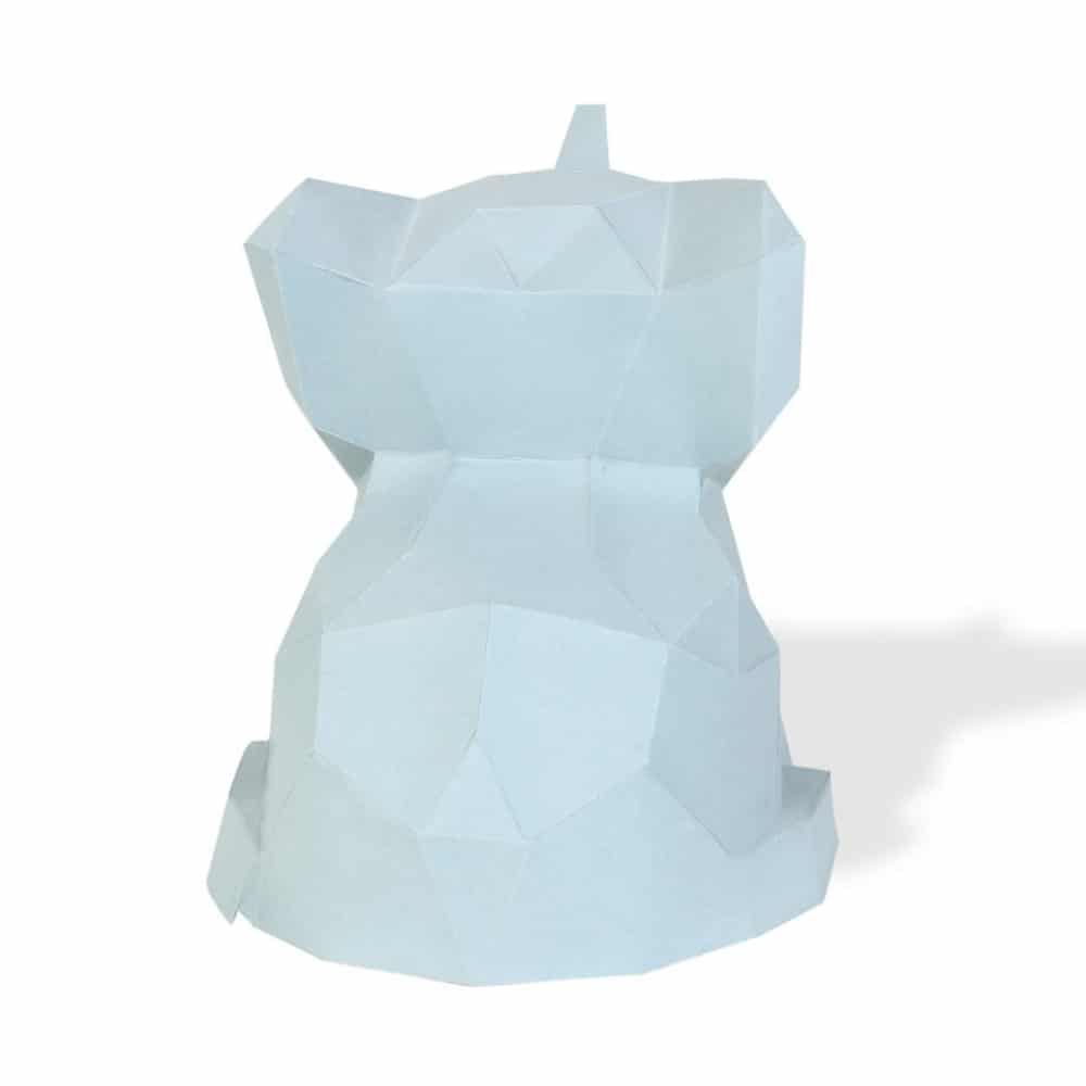 C’est très simple, il suffit de détacher les pièces, de les plier en suivant les pointillés et de les assembler à l’aide du scotch double face en respectant les numéros. Petit conseil de montage si il n’y a pas de précision : commencer par le bout du nez pour finir par la pièce qui sera posée au mur. N’hésitez pas à le renforcer au fur et à mesure avec un peu de scotch toilé aux pliures les plus importantes.