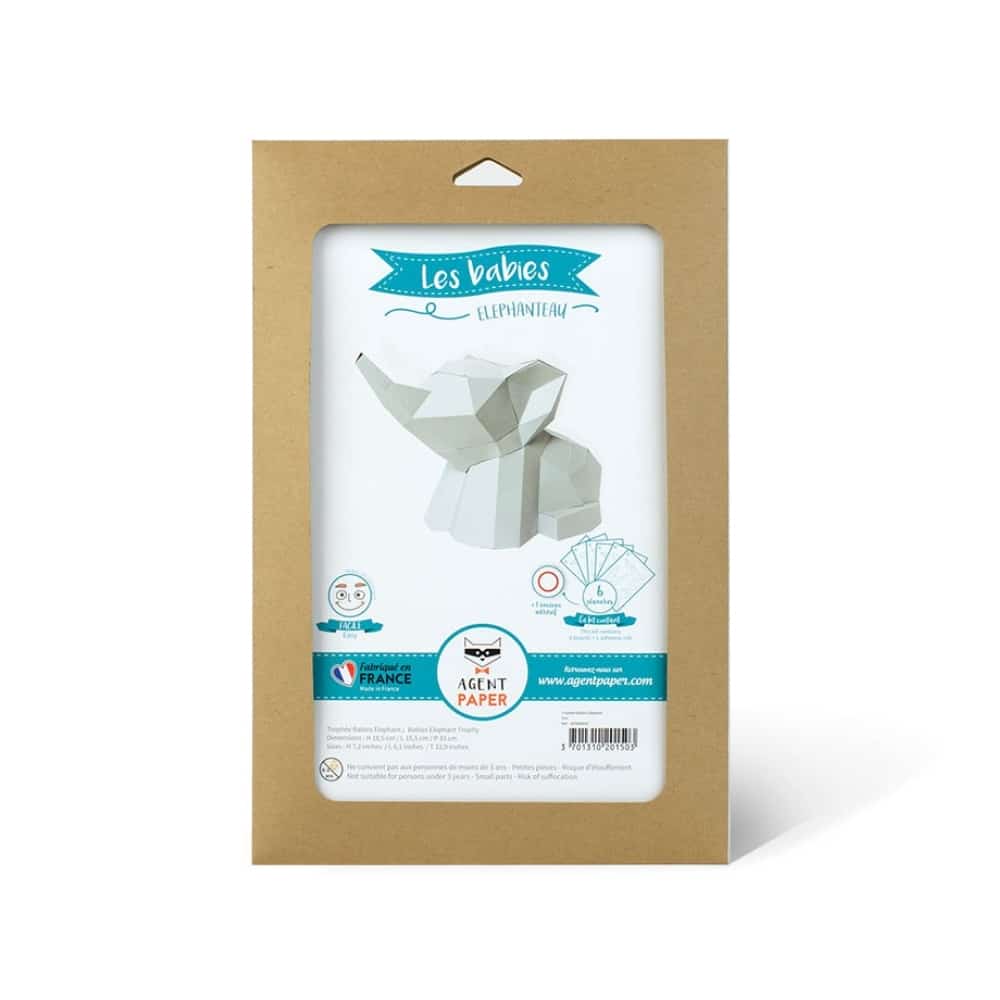 Trophée en papier 3D Babies Eléphanteau, décoration originale à poser 100% fabrication française et éco-responsable de la marque Agent-Paper, à monter soi-même niveau facile.