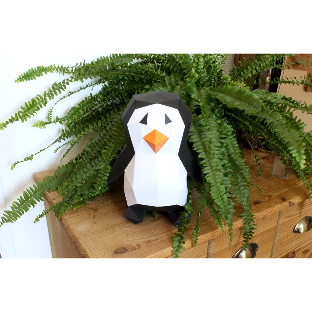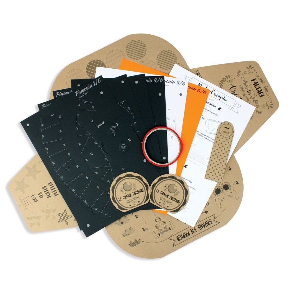 Kit de décoration à poser en papier 100% recyclé fabriqué en France. Le kit comprend des planches de pièces pré-découpées, une notice et du scotch double face, tout y est pour construire ce joli pingouin.