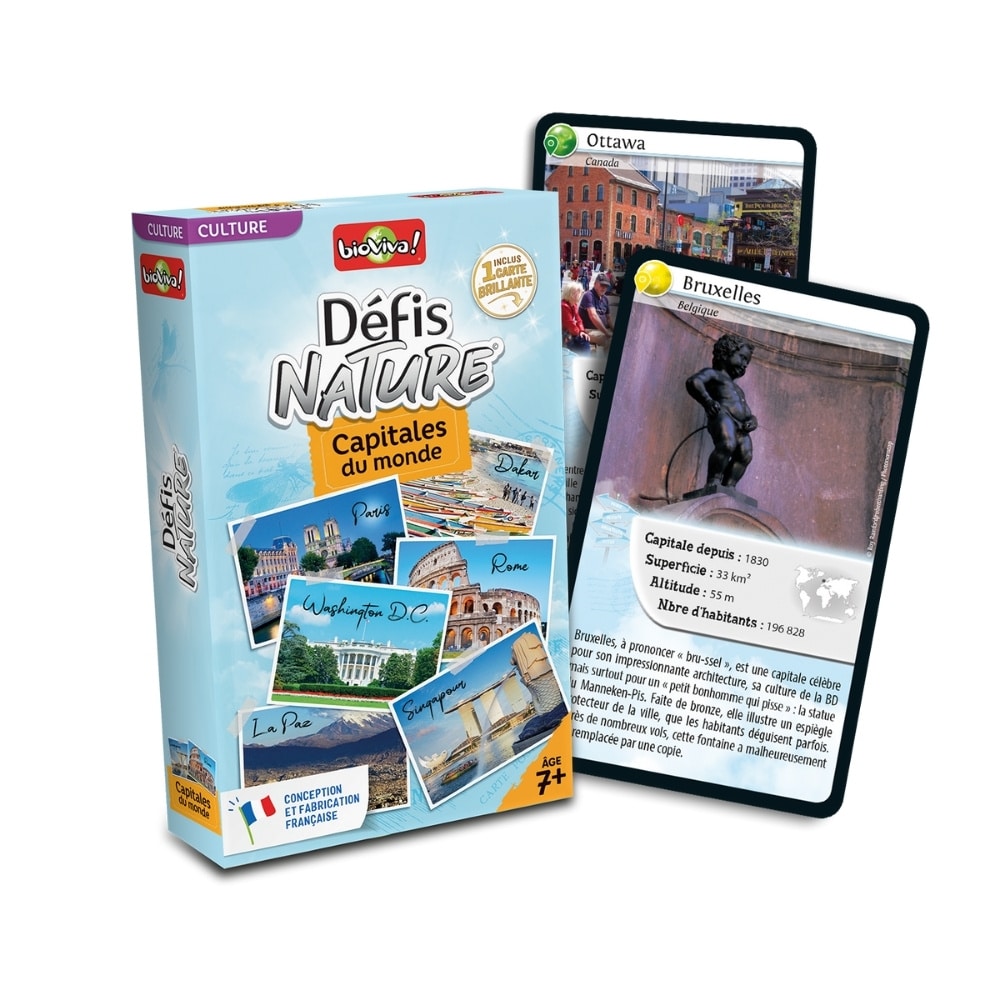 Jeu de cartes, de 2 à 6 joueurs, environ 20 min, de la marque Bioviva, fabriqué en France et éco conçu, vous emmène à la découverte des capitales du monde.