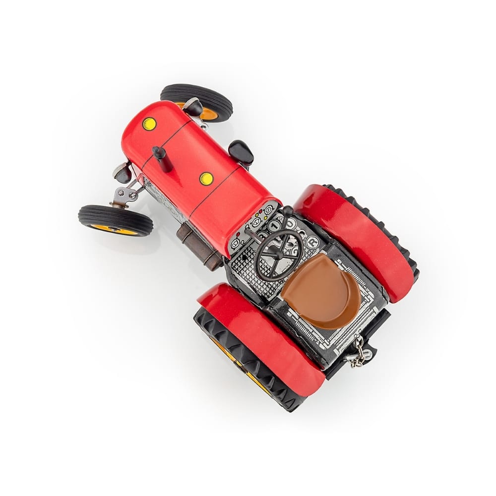 Tracteur à remonter en tôle, jouet de collection à l’ancienne fabriqué à la main en République Tchèque.